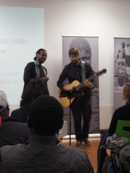 Bilder der Eröffnung mit Thierry Boudjekeu (Bayreuth), Christian Armin (Freiburg), Dr. Robbie Aitken (Sheffield), Rufine Songué (Here and Black)